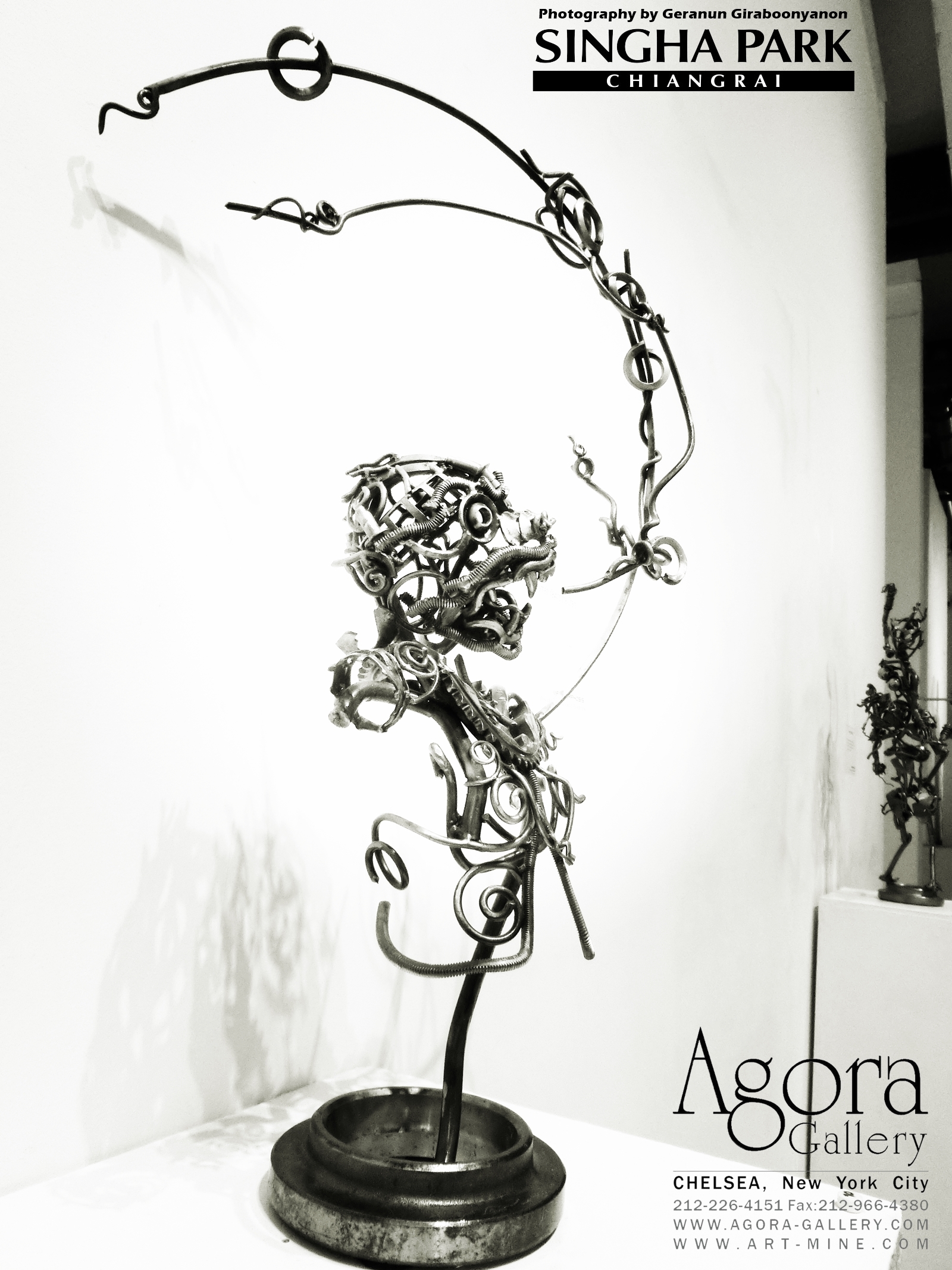Banjerd Lekkong,produces very unique metal sculptures.Born inNakhon Ratchasima in Thailand’s northeastern region,Banjerd nowresides inin Bangkok.He was initiallytrained as an architectandhasalso workedas an interior designer. His intricate and lively compositions, all unique pieces, often represent Hindu gods, such as Ganesha, and mythical figureswhichare integral parts of the culture ofthedominantly Buddhist Thailand. Exhibition Dates: May 20, 2016 – June 9, 2016